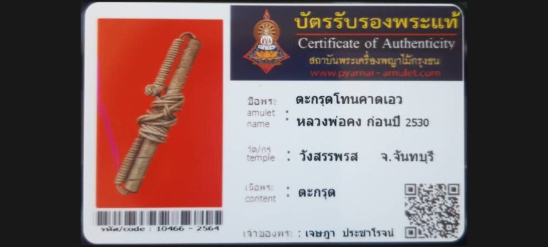 บัตรที่ผ่านการรับรองไม่มีหมวดหมู่ ตะกรุดคาดเอว หลวงพ่อคง วัดวังสรรพรส จ.จันทบุรี เจ้าของพระ คุณเจษฎา ประชาโรจน์ รหัสบัตร 10466 – 2564