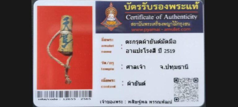 ไม่มีหมวดหมู่ ตะกรุดผ้ายันต์มัดมือ อาแปะโรงสี วัดศาลเจ้า จ.ปทุมธานี เจ้าของพระ คุณพสิษฐ์พล พรรณพัฒน์ รหัสบัตร 12655 – 2565