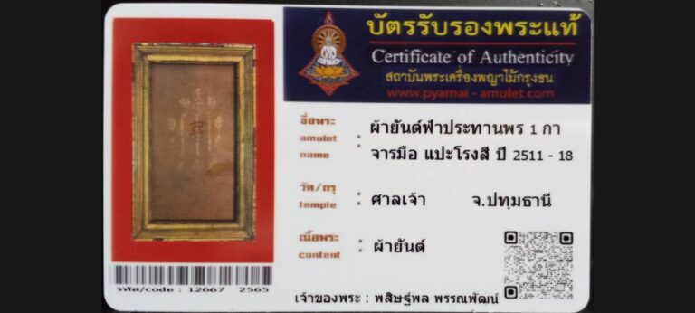ไม่มีหมวดหมู่ ผ้ายันต์ฟ้าประทานพร 1กา จารมือ อาแปะโรงสี วัดศาลเจ้า จ.ปทุมธานี เจ้าของพระ คุณพสิษฐ์พล พรรณพัฒน์ รหัสบัตร 12667 – 2565