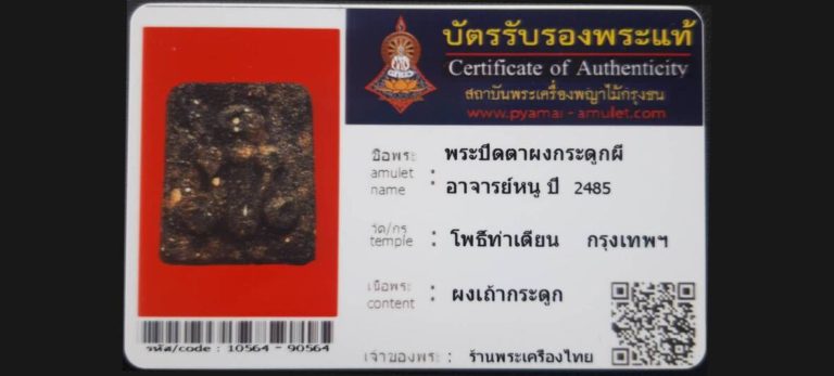 บัตรที่ผ่านการรับรองไม่มีหมวดหมู่ พระปิดตาผงกระดูกผี อาจารย์หนู วัดโพธิ์ท่าเตียน กรุงเทพฯ เจ้าของพระ ร้านพระเครื่องไทย รหัสบัตร 10564 – 2564