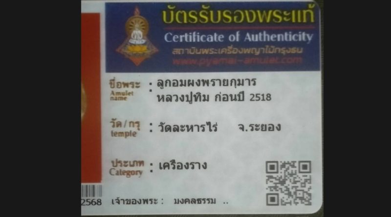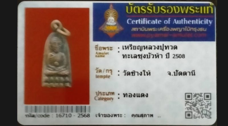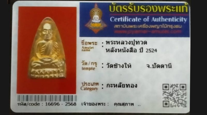 ดูเพิ่มเติมเมื่อเราออกบัตรรับรองพระแท้ให้กับคุณแล้ว จะมีบันทึกการออกบัตรนำเสนอไว้บนเว็บไซต์ของเรา ว่าผ่านการรับรองจากชมรมพญาไม้กรุงธนอย่างถูกต้อง สามารถค้นหาด้วยไอดีของบัตรรับรองพระแท้ได้