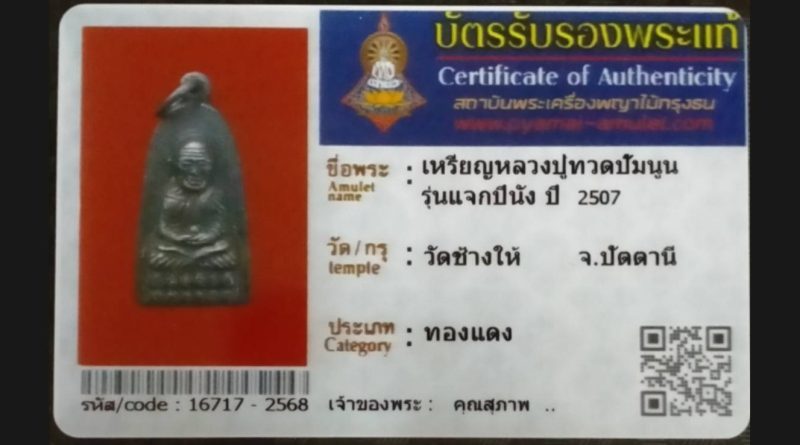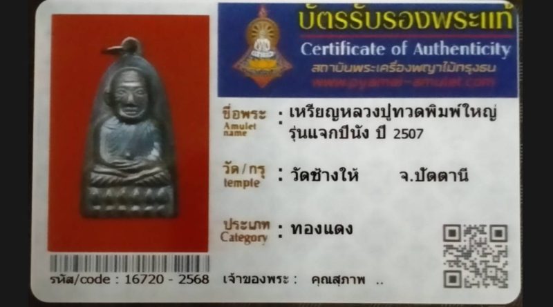 ดูเพิ่มเติมเจ้าของพระ นานนพเก้า รหัสบัตร 16035 – 2568