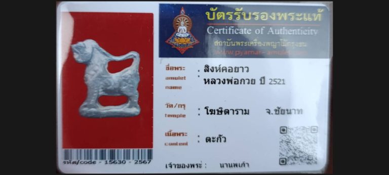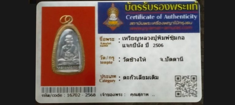 – ออกบัตรโดยชมรมพระเครื่องพญาไม้กรุงธน
