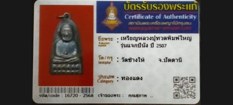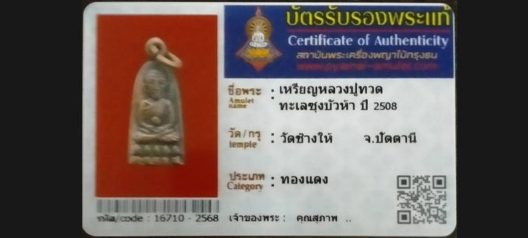 เจ้าของพระ คุณสุภาพ รหัสบัตร 16696 – 2568