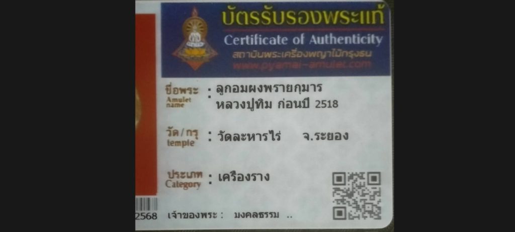 ไม่มีหมวดหมู่ ลูกอมผงพรายกุมารหลวงปู่ทิม วัดละหารไร่ จ.ระยอง 05/12/2025 Pyamai Amulet เจ้าของบัตร มงคลธรรม รหัสบัตร 16678 – 2568