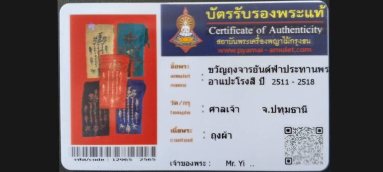 • ← Previous ตะกรุดผ้ายันต์มัดมือไหม บล๊อคนิยม อาแปะโรงสี วัดศาลเจ้า จ.ปทุมธานี