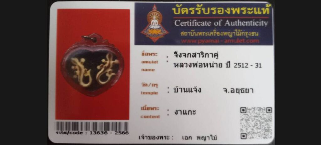 ไม่มีหมวดหมู่ จิ้งจกสาริกาคู่ หลวงพ่อหน่าย วัดบ้านแจ้ง จ.อยุธยา 10/08/2023 Pyamai Amulet เจ้าของพระ เอกพญาไม้ รหัสบัตร 13636 – 2566.1