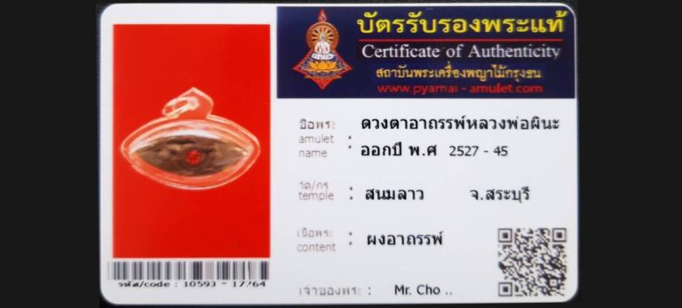 บัตรที่ผ่านการรับรองไม่มีหมวดหมู่ ดวงตาอาถรรพ์หลวงพ่อผินะ วัดสนมลาว จ.สระบุรี เจ้าของพระ Mr.Cho.. รหัสบัตร 10593 – 17764
