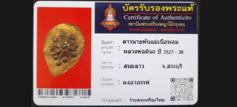 บัตรที่ผ่านการรับรองไม่มีหมวดหมู่ ดาวนายพันแม่เนื้อหอมหลวงพ่อผินะ วัดสนมลาว จ.สระบุรี เจ้าของพระ ร้านพระเครื่องไทย รหัสบัตร 11093 – 2564