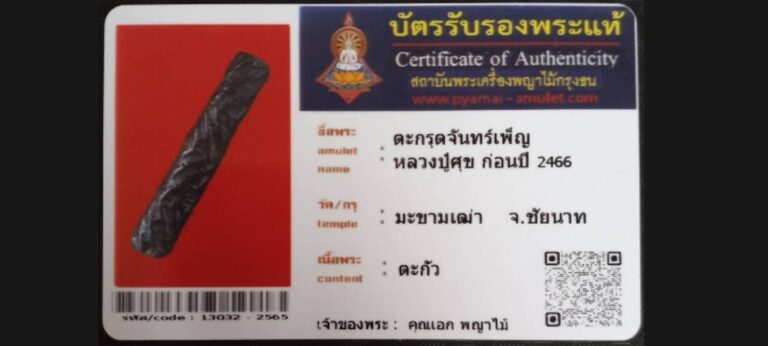 ไม่มีหมวดหมู่ ตะกรุดจันทร์เพ็ญ หลวงปู่ศุข วัดมะขามเฒ่าฯ จ.ชัยนาท เจ้าของพระ เอกพญาไม้ รหัสบัตร 13032 – 2565