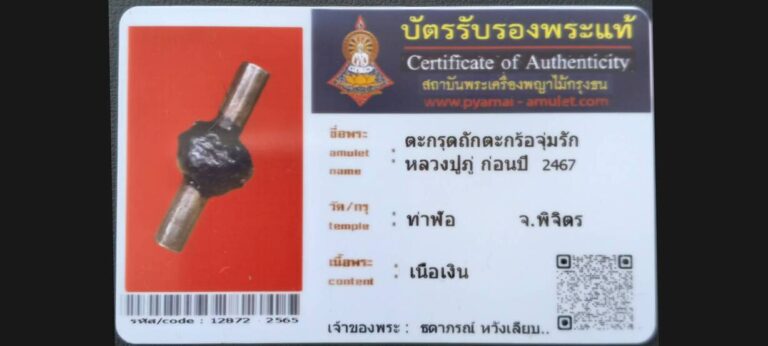 ไม่มีหมวดหมู่ ตะกรุดถักตะกร้อจุ่มรัก หลวงปู่ภู่ วัดท่าฬอ จ.พิจิตร เจ้าของพระ คุณธดาภรณ์ หวังเลียบ.. รหัสบัตร 12872 – 2565