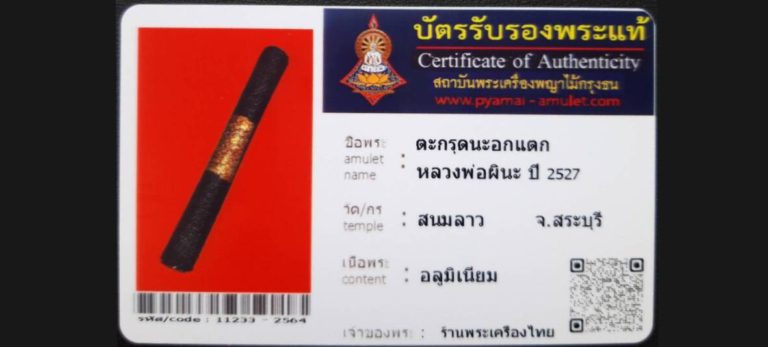 บัตรที่ผ่านการรับรองไม่มีหมวดหมู่ ตะกรุดนะอกแตก หลวงพ่อผินะ วัดสนมลาว จ.สระบุรี เจ้าของพระ ร้านพระเครื่องไทย รหัสบัตร 11233 – 2564