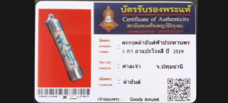 • Next → ตะกรุดผ้ายันต์ฟ้าประทานพร 1กา อาแปะโรงสี วัดศาลเจ้า จ.ปทุมธานี