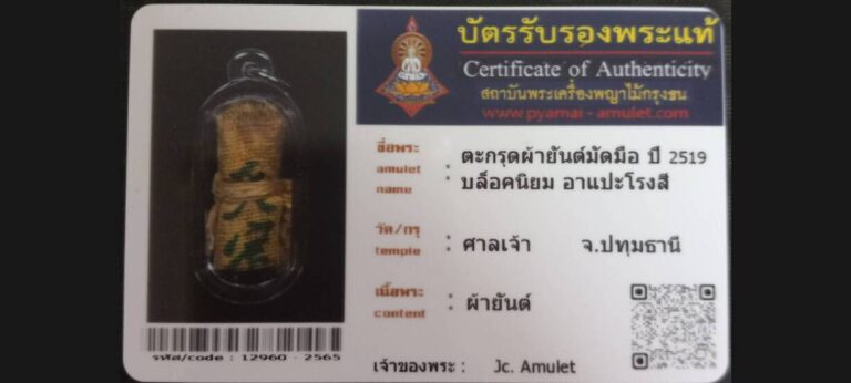 ตะกรุดผ้ายันต์มัดมือไหม บล๊อคนิยม อาแปะโรงสี วัดศาลเจ้า จ.ปทุมธานี