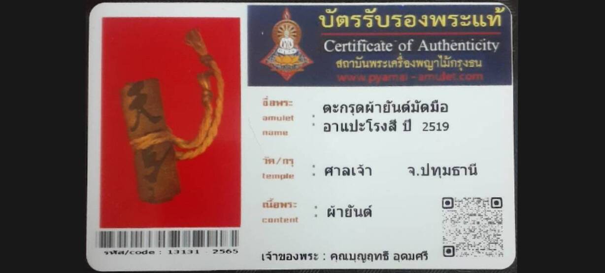 ตะกรุดผ้ายันต์มัดมือ อาแปะโรงสี วัดศาลเจ้า จ.ปทุมธานี
