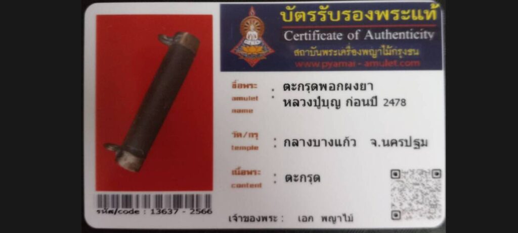 ตะกรุดพอกผงยา หลวงปู่บุญ วัดกลางบางแก้ว จ.นครปฐม