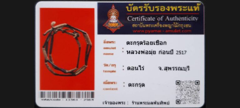 บัตรที่ผ่านการรับรองไม่มีหมวดหมู่ ตะกรุดร้อยเชือกหลวงพ่อมุ่ย วัดดอนไร่ จ.สุพรรณบุรี เจ้าของพระ ร้านพระ มลพันทิพย์ รหัสบัตร 11561 – 2564