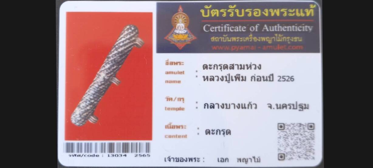 ไม่มีหมวดหมู่ ตะกรุดสามห่วง หลวงปู่เพิ่ม วัดกลางบางแก้ว จ.นครปฐม 16/04/2023 Pyamai Amulet เจ้าของพระ คุณเอก พญาไม้ รหัสบัตร 13034 – 2565