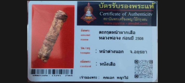 ไม่มีหมวดหมู่ ตะกรุดหน้าผากเสือ หลวงพ่อจง วัดหน้าต่างนอก จ.อยุธยา เจ้าของพระ เอกพญาไม้ รหัสบัตร 13291 – 2566