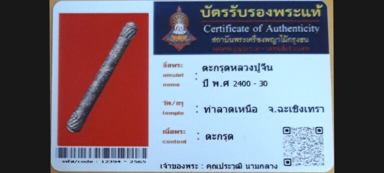 ไม่มีหมวดหมู่ ตะกรุดหลวงปู่จีน วัดท่าลาดเหนือ จ.ฉะเชิงเทรา เจ้าของพระ คุณประวุฒิ นามกลาง รหัสบัตร 12394 – 2565