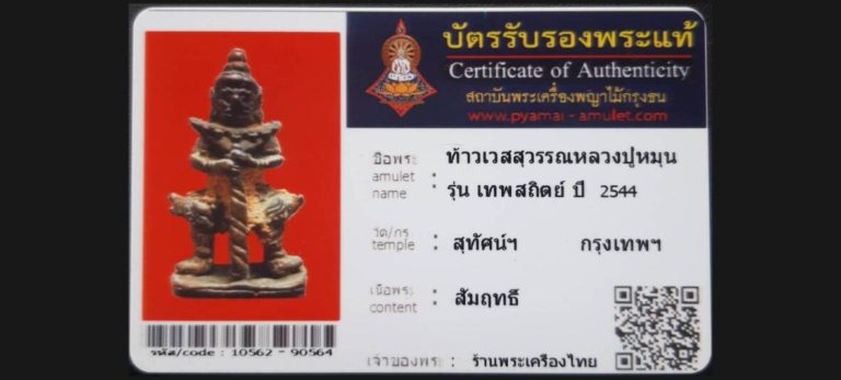 บัตรที่ผ่านการรับรองไม่มีหมวดหมู่ ท้าวเวสสุวรรณหลวงปู่หมุน วัดสุทัศน์ฯ กรุงเทพฯ เจ้าของพระ ร้านพระเครื่องไทย รหัสบัตร 10562 – 2564