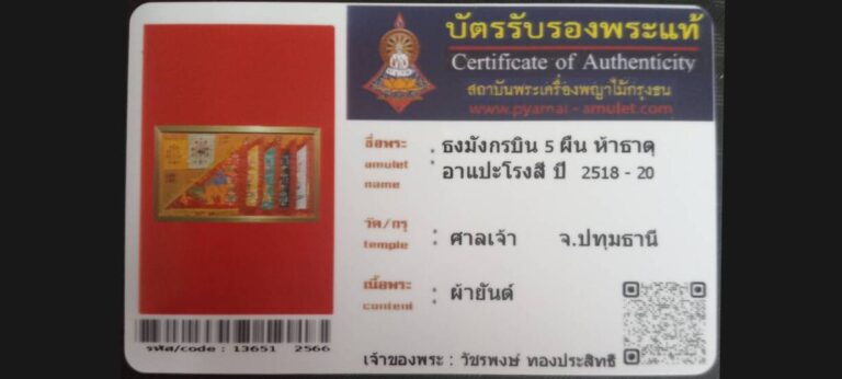 ไม่มีหมวดหมู่ ธงมังกรบิน 5ผืน 5ธาตุ อาแปะโรงสี วัดศาลเจ้า จ. ปทุมธานี เจ้าของพระ คุณวัชรพงษ์ ทองประสิทธิ รหัสบัตร 13651 – 2566
