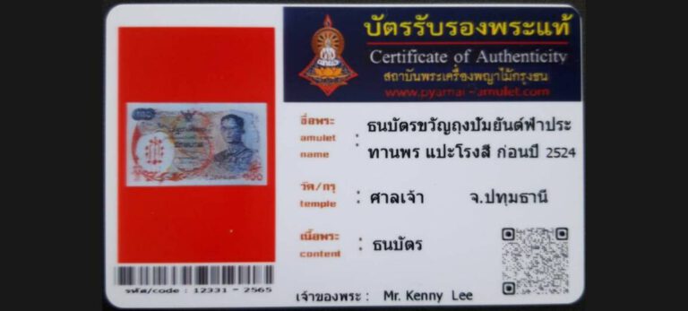 ไม่มีหมวดหมู่ ธนบัตรขวัญถุงปั๊มยันต์ฟ้าประทานพร อาแปะโรงสี วัดศาลเจ้า จ.ปทุมธานี เจ้าของพระ Mr.Kenny Lee รหัสบัตร 12331 – 2565