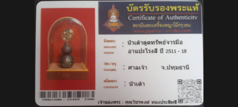 ไม่มีหมวดหมู่ น้ำเต้าดูดทรัพย์จารมือ อาแปะโรงสี วัดศาลเจ้า จ.ปทุมธานี เจ้าของพระ คุณวัชรพงษ์ ทองประสิทธิ รหัสบัตร 13329 – 2566