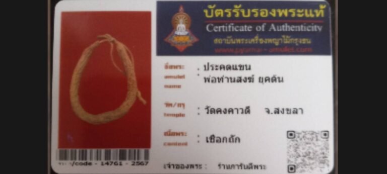 ไม่มีหมวดหมู่ ประคตแขนพ่อท่านสงฆ์ยุคต้น วัดคงคาวดี จ.สงขลา เจ้าของพระ ร้านการันตีพระ รหัสบัตร 14761 – 2567