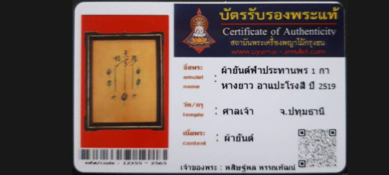 ผ้ายันต์ฟ้าประทานพรจารมือ 1 กาหางยาว อาแปะโรงสี วัดศาลเจ้า จ.ปทุมธานี