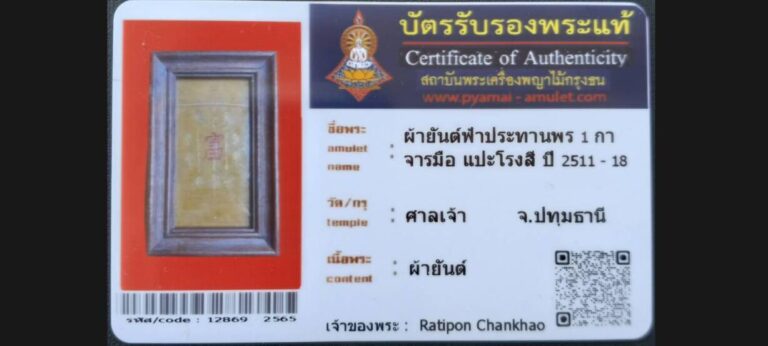 ไม่มีหมวดหมู่ ผ้ายันต์ฟ้าประทานพรจารมือ 1 กา อาแปะโรงสี วัดศาลเจ้า จ.ปทุมธานี เจ้าของพระ Ratipon Chankhao รหัสบัตร 12869 – 2565