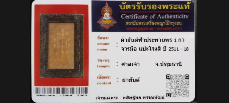 ไม่มีหมวดหมู่ ผ้ายันต์ฟ้าประทานพร 1กา จารมือ อาแปะโรงสี วัดศาลเจ้า จ.ปทุมธานี เจ้าของพระ คุณพสิษฐ์พล พรรณพัฒน์ รหัสบัตร 12664 – 2565