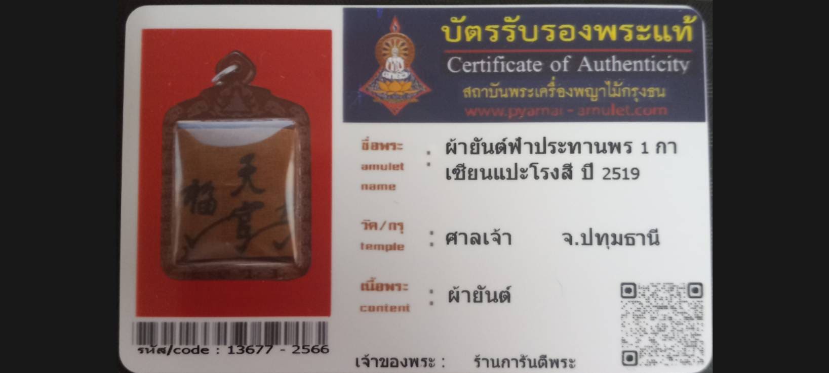 ผ้ายันต์ฟ้าประทานพร 1กา เซียนแปะโรงสี วัดศาลเจ้า จ.ปทุมธานี