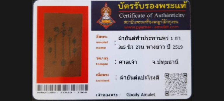 ไม่มีหมวดหมู่ ผ้ายันต์ฟ้าประทานพร 1 กา 3×5 นิ้ว 2 วน หางยาว อาแปะโรงสี วัดศาลเจ้า จ.ปทุมธานี เจ้าของพระ Goody Amulet รหัสบัตร 11620 – 2564