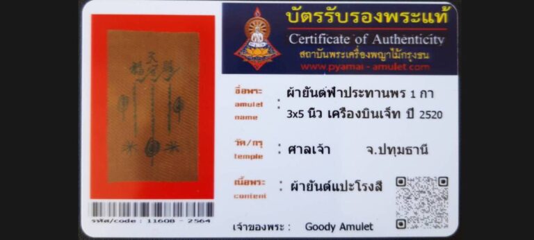 บัตรที่ผ่านการรับรอง (ซ่อน) ผ้ายันต์ฟ้าประทานพร 1 กา 3×5 นิ้ว เครื่องบินเจ็ท อาแปะโรงสี วัดศาลเจ้า จ.ปทุมธานี เจ้าของพระ Goody Amulet รหัสบัตร 11608 – 2564