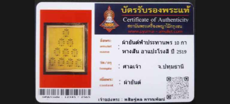 ผ้ายันต์ฟ้าประทานพร 10กาหางสั้น อาแปะโรงสี วัดศาลเจ้า จ.ปทุมธานี