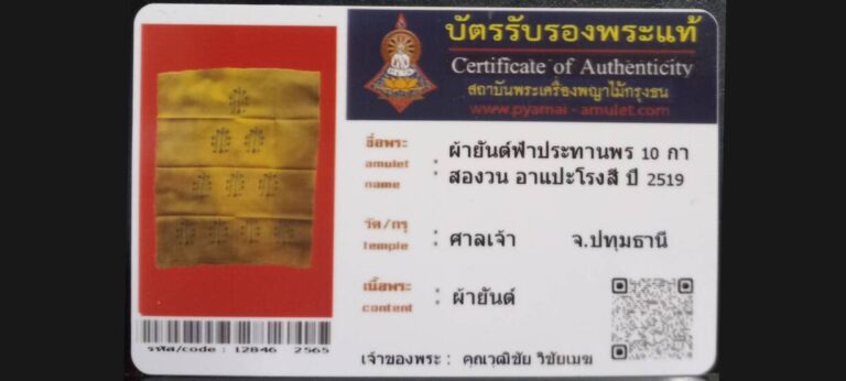 ไม่มีหมวดหมู่ ผ้ายันต์ฟ้าประทานพร 10 กา สองวน อาแปะโรงสี วัดศาลเจ้า จ.ปทุมธานี เจ้าของพระ คุณวุฒิชัย วิชัยเมฆ รหัสบัตร 12846 – 2565
