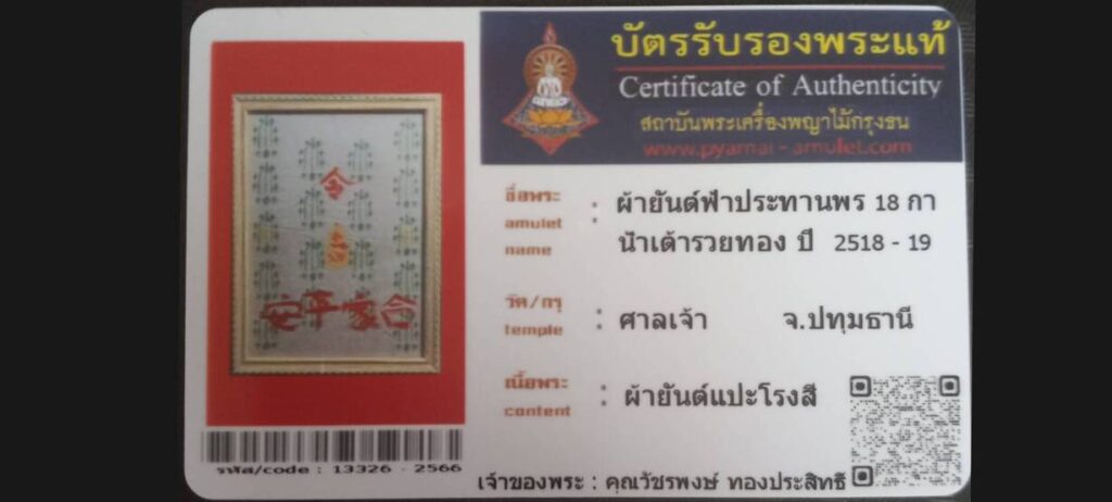 ไม่มีหมวดหมู่ ผ้ายันต์ฟ้าประทานพร 18 กา น้ำเต้ารวยทอง อาแปะโรงสี วัดศาลเจ้า จ.ปทุมธานี 26/05/2023 Pyamai Amulet เจ้าของพระ คุณวัชรพงษ์ ทองประสิทธิ รหัสบัตร 13326
