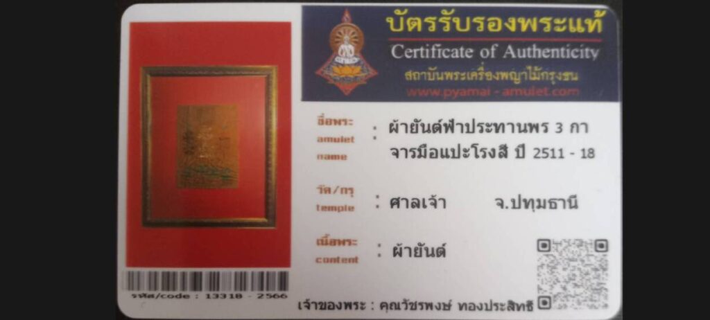 ไม่มีหมวดหมู่ ผ้ายันต์ฟ้าประทานพร 3 กาจารมือ อาแปะโรงสี วัดศาลเจ้า จ.ปทุมธานี 11/05/2023 Pyamai Amulet เจ้าของพระ คุณวัชรพงษ์ ทองประสิทธิ รหัสบัตร 13310 – 2566