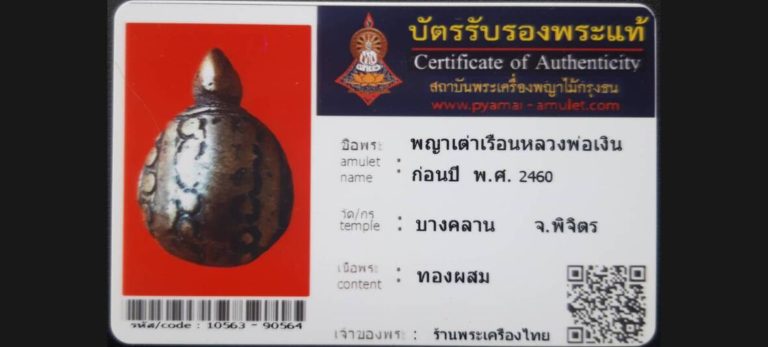 บัตรที่ผ่านการรับรองไม่มีหมวดหมู่ พญาเต่าหลวงพ่อเงิน วัดบางคลาน จ.พิจิตร เจ้าของพระ ร้านพระเครื่องไทย รหัสบัตร 10566 – 2564
