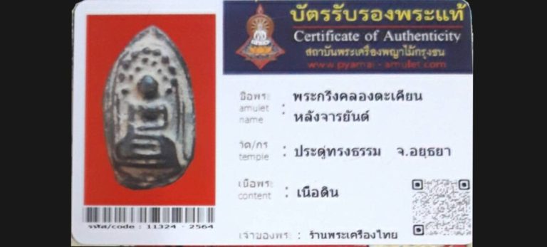 บัตรที่ผ่านการรับรองไม่มีหมวดหมู่ พระกริ่งคลองตะเคียน หลังจารยันต์ วัดประดูทรงธรรม จ.อยุธยา เจ้าของพระ ร้านพระเครื่องไทย รหัสบัตร 11324 – 2564