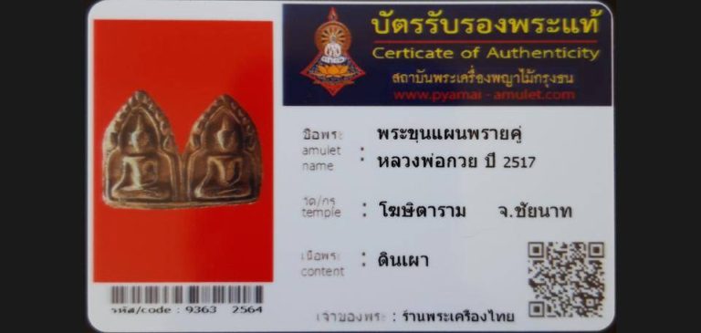 บัตรที่ผ่านการรับรองไม่มีหมวดหมู่ พระขุนแผนพรายคู่ หลวงพ่อกวย วัดโฆษิตาราม จ.ชัยนาท เจ้าของพระ ร้านพระเครื่องไทย รหัสบัตร 9363-2564