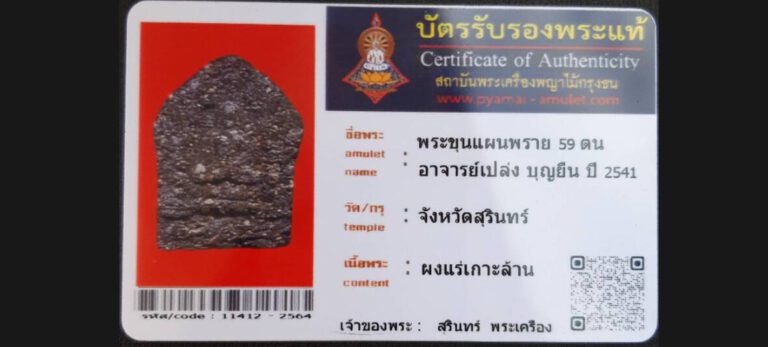 บัตรที่ผ่านการรับรองไม่มีหมวดหมู่ พระขุนแผนพราย 59 ตน อาจารย์เปล่ง บุญยืน จังหวัดสุรินทร์ เจ้าของพระ สุรินทร์พระเครื่อง รหัสบัตร 11412 – 2564