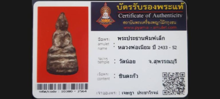 บัตรที่ผ่านการรับรองไม่มีหมวดหมู่ พระประธานหลวงพ่อเนียม พิมพ์เล็ก วัดน้อย จ.สุพรรณบุรี เจ้าของพระ คุณเจษฎา ประชาโรจน์ รหัสบัตร 10380 – 2564