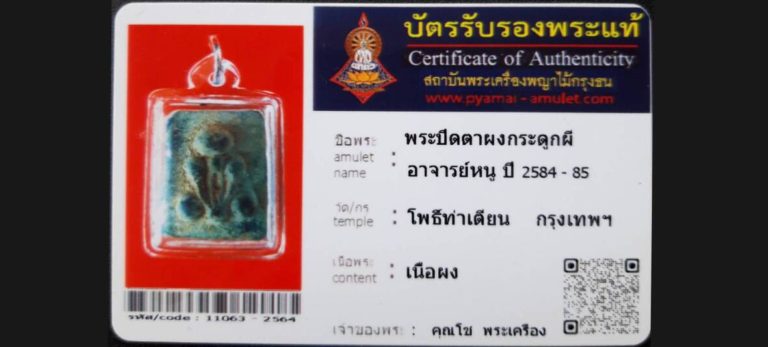 บัตรที่ผ่านการรับรองไม่มีหมวดหมู่ พระปิดตาผงกระดูกผี อาจารย์หนู วัดโพธิ์ท่าเตียน กรุงเทพฯ เจ้าของพระ คุณโช พระเครื่อง รหัสบัตร 11063 – 2564