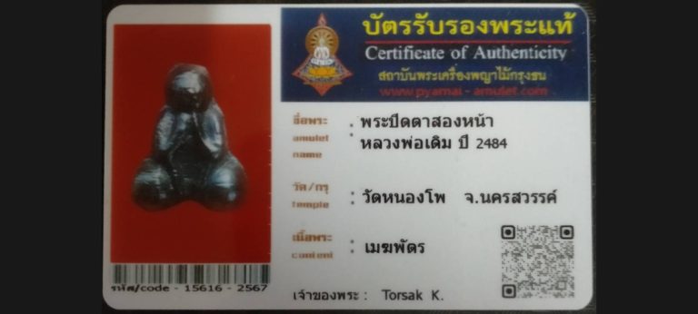 ไม่มีหมวดหมู่ พระปิดตาสองหน้าหลวงพ่อเดิม วัดหนองโพ จ.นครสวรรค์ เจ้าของพระ Torsak K. รหัสบัตร 15616 – 2567