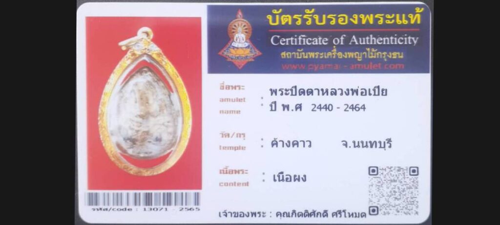 พระปิดตาหลวงพ่อเปีย วัดค้างคาว จ.นนทบุรี