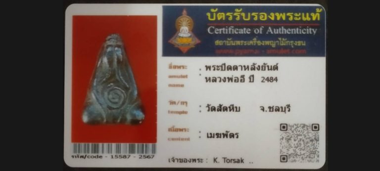 ไม่มีหมวดหมู่ พระปิดตาหลังยันต์ หลวงพ่ออี วัดสัตหีบ จ.ชลบุรี เจ้าของพระ K. Torsak รหัสบัตร 15587 – 2567