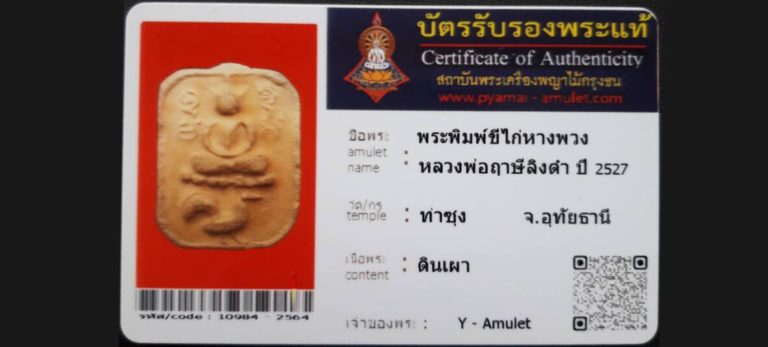 บัตรที่ผ่านการรับรองไม่มีหมวดหมู่ พระพิมพ์ขี่ไก่หางพวง หลวงพ่อฤาษีลิงดำ วัดท่าซุง จ.อุทัยธานี เจ้าของพระ Y – Amulet รหัสบัตร 10984 – 2564