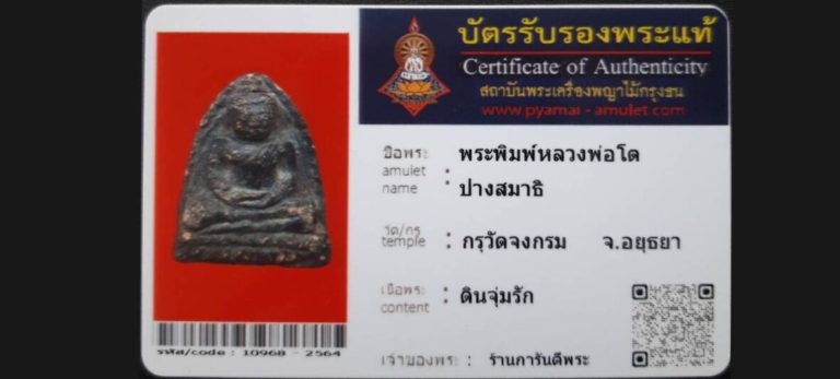 บัตรที่ผ่านการรับรองไม่มีหมวดหมู่ พระพิมพ์หลวงพ่อโตปางสมาธิ กรุวัดจงกรม จ.อยุธยา เจ้าของพระ ร้านการันตีพระ รหัสบัตร 10968 – 2564